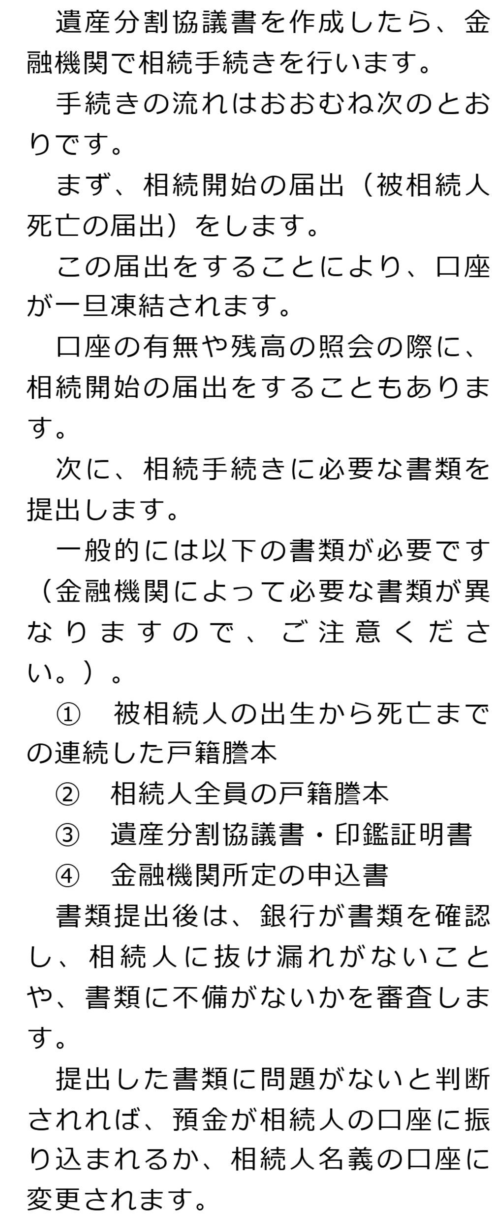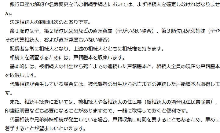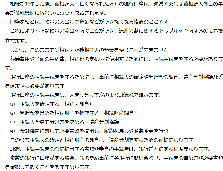1 銀行口座の相続手続きの概要