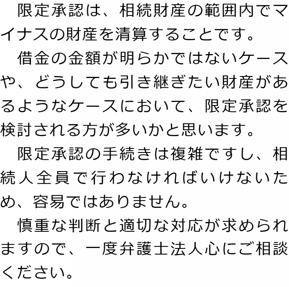 トップ業務内容限定承認 階層構造▼ 業務内容(目次) 限定承認 業務内容(目次)業務内容トップ行政書士法人心の業務内容遺言遺産整理相続人調査相続財産調査遺産分割協議書の作成預金・貯金の解約・名義変更証券口座の解約・名義変更自動車の名義変更心グループのその他の業務内容家族信託・民事信託節税対策事業承継遺言の検認相続放棄限定承認遺産分割遺留分侵害額請求相続登記相続税申告相続税調査 受付時間 平日 9時~21時、土日祝 9時~18時 夜間・土日祝の相談も対応します (要予約) 所在地 〒163-0990 東京都新宿区西新宿2-3-1新宿モノリスビル地下1F 0120-2403-39 お問合せ・アクセス・地図