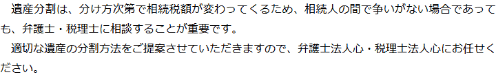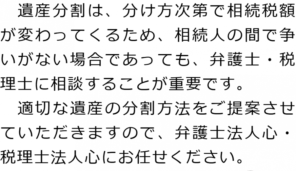 トップ業務内容遺産分割 階層構造▼ 業務内容(目次) 遺産分割 業務内容(目次)業務内容トップ行政書士法人心の業務内容遺言遺産整理相続人調査相続財産調査遺産分割協議書の作成預金・貯金の解約・名義変更証券口座の解約・名義変更自動車の名義変更心グループのその他の業務内容家族信託・民事信託節税対策事業承継遺言の検認相続放棄限定承認遺産分割遺留分侵害額請求相続登記相続税申告相続税調査 受付時間 平日 9時~21時、土日祝 9時~18時 夜間・土日祝の相談も対応します (要予約) 所在地 〒163-0990 東京都新宿区西新宿2-3-1新宿モノリスビル地下1F 0120-2403-39 お問合せ・アクセス・地図